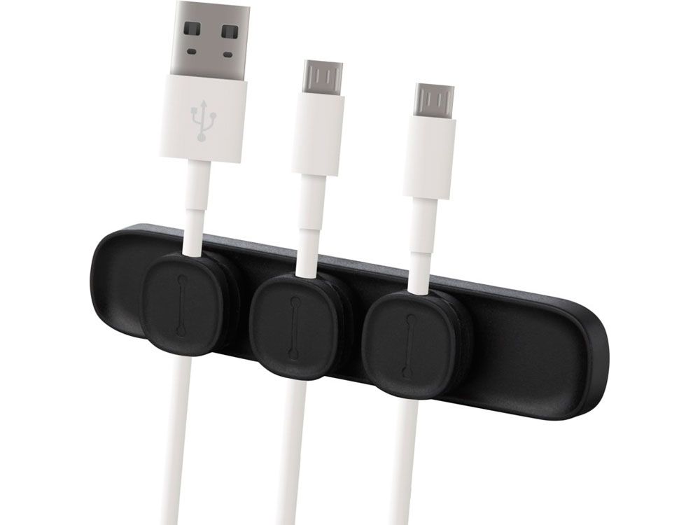 Магнитный органайзер для кабелей, который поможет держать стол в чистоте и порядке. Прикрепите магнитный зажим к кабелям, а затем поместите их на ленту, чтобы надежно зафиксировать. В комплект входят 3 магнитных зажима. Поставляется в подарочной коробке Avenue. Силиконовый пластик, железо.