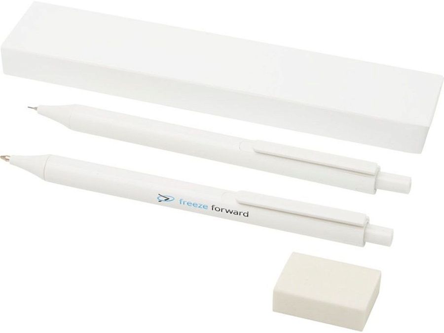 Комплект антибактериальных канцелярских принадлежностей, состоящий из шариковой ручки с нажимным механизмом, механического карандаша и ластика. Нанопорошковая добавка уменьшает рост микроорганизмов на поверхности ручек.