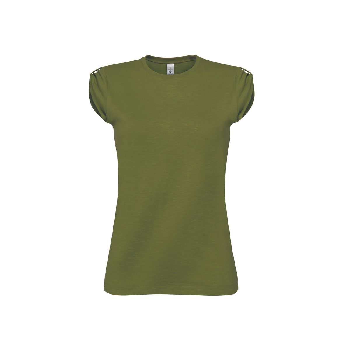 Футболка женская, приталенная, с боковыми швами, плотностью 150 г/кв.м.; тонкая линия воротника с резинкой 1х1 из фасонной пряжи (slub yarn).