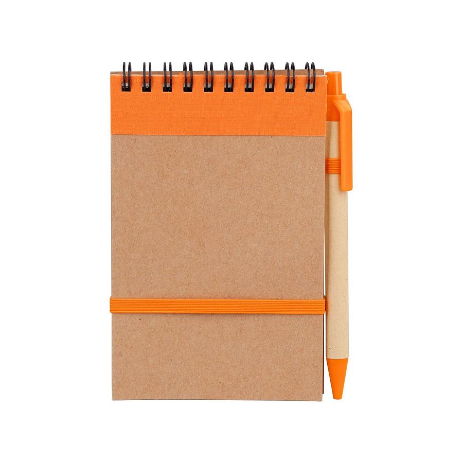 Блокнот - переработанный картон, ручка - переработанный пластик, паста черного цвета, 70 листов, без разлиновки