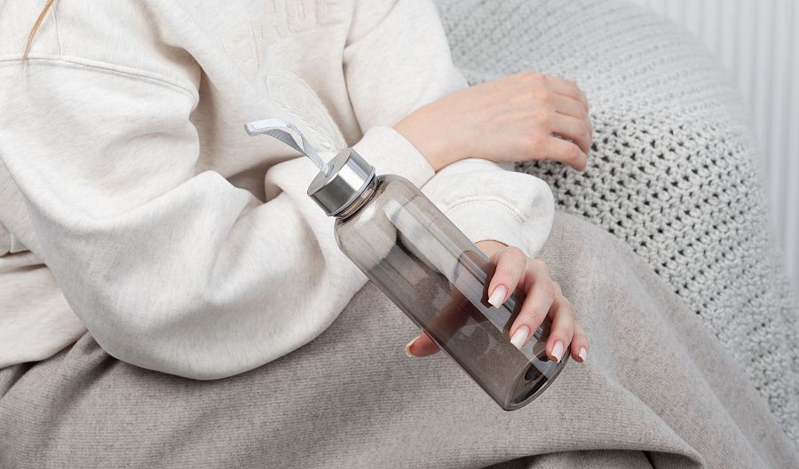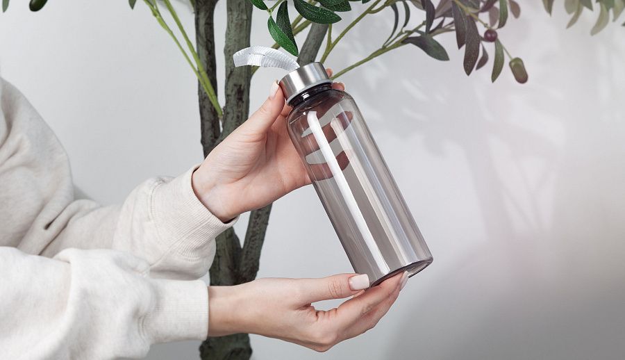 Бутылка для воды «H2O» — это удобный и полезный презент для любого человека. Она позволяет всегда иметь при себе запас (500 мл) чистой питьевой воды. Бутылка изготовлена из экологически чистого пластика и оснащена завинчивающейся металлической крышкой. Текстильная ручка на крышке дает возможность максимально удобно переносить емкость в руках. Благодаря стандартному размеру, бутылка хорошо помещается в сумку и рюкзак.