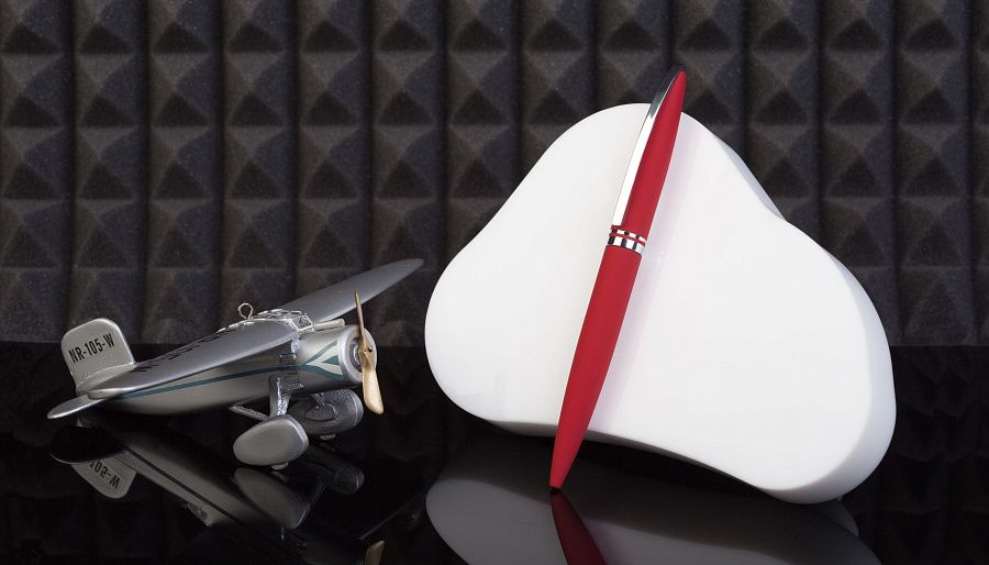 Тонкий цельнометаллический клип подпружинен и имеет ход до 5 мм для удобства зацепления. Деловой имидж ручки подчеркивает солидный вес - 34 г. Матовое прорезиненное покрытие хорошо сочетается с блестящими хромированными элементами.