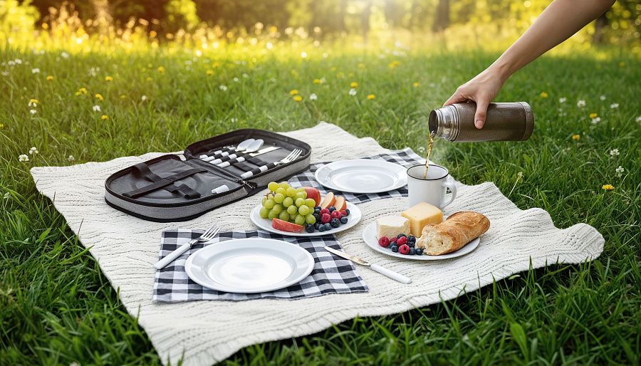 В набор входят: тарелки, ножи сервировочные, вилки, ложки, нож сомелье, салфетки.