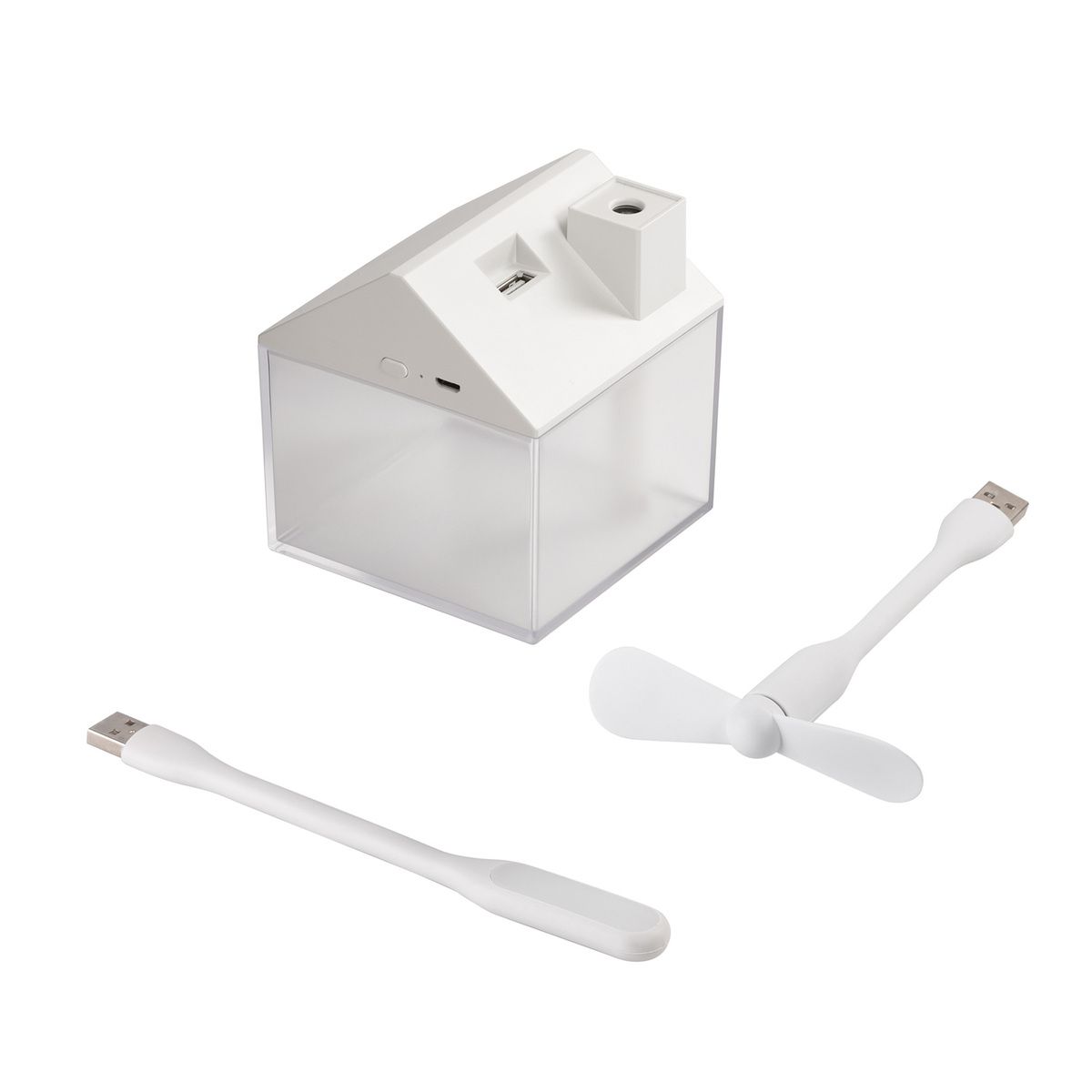 Объём резервуара -250 мл. Простая конструкция позволяет легко заливать/сливать воду. Работает в нескольких режимах, один из которых с цветовой индикацией. К нему можно подключить дополнительные аксессуары через USB-разъём, которые выполняют полезные функции, и добавляют особую атмосферу.