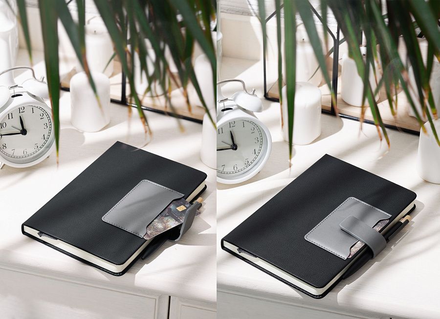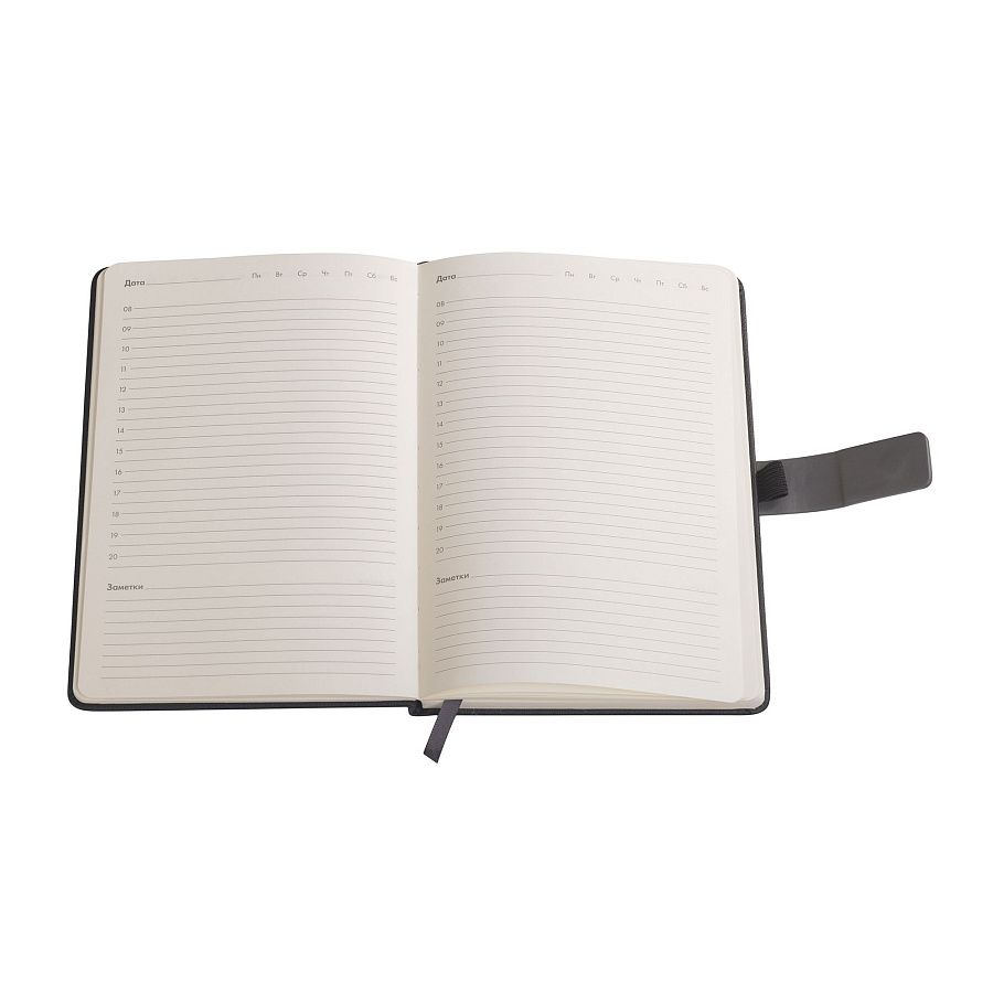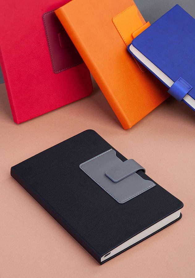 На лицевой стороне ежедневника предусмотрен карман для карт, записок, визиток. Чтобы заметки и записи были под контролем, а пользователь в любой момент мог внести новую информацию - у "Монти" предусмотрена петелька для ручки. Кроме того, ежедневник закрывается на магнитный хлястик.