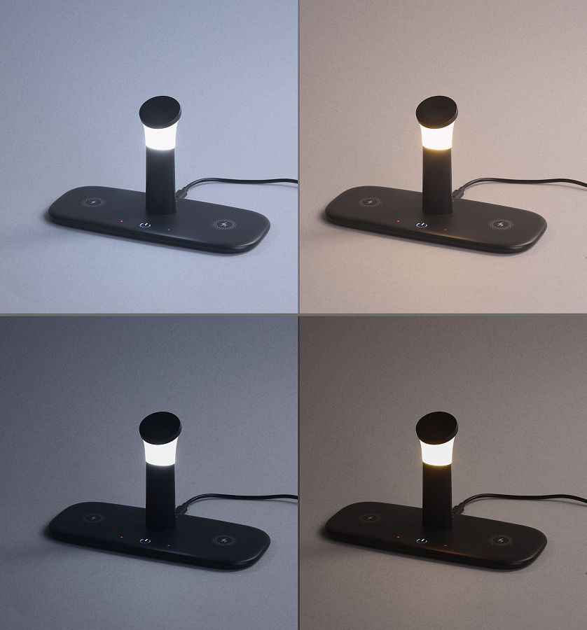 Настольная зарядная станция - это компактное решение для одновременной быстрой 15W беспроводной зарядки смарт-часов (Apple watch), наушников и смартфонов. У лампы доступны 2 режима освещения: холодный свет и теплый свет. В каждом из режимов можно регулировать яркость света. Блок быстрой (до 15W) беспроводной зарядки смартфона обозначен двумя молниями; блок, обозначенный одной молнией, заряжает с мощностью 5W. Желательно перед использованием ознакомиться с инструкцией.