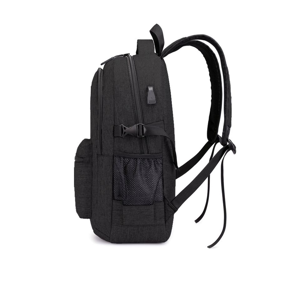 Сбоку USB-разъем с проводом для подключения внешнего аккумулятора и два объёмных кармана с вентилируемой сеткой и регулируемыми тесьмами-стяжками на защёлках-фастексах которые существенно расширяют функционал и вместимость рюкзака.