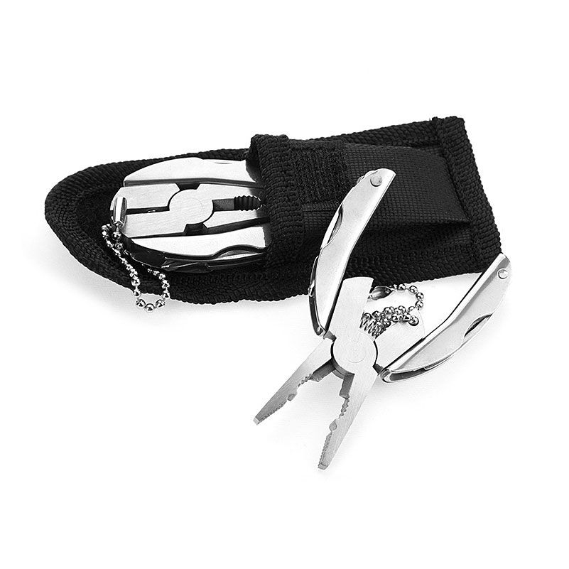 Мультитул «Франкфурт» — это складные мини-плоскогубцы из нержавеющей стали, размером чуть больше брелока. В составе: плоскогубцы, пилка, нож, плоская и крестовая отвёртки, на цепочке. Это отличный помощник для кемпинга, рыбалки, походов и т.п.