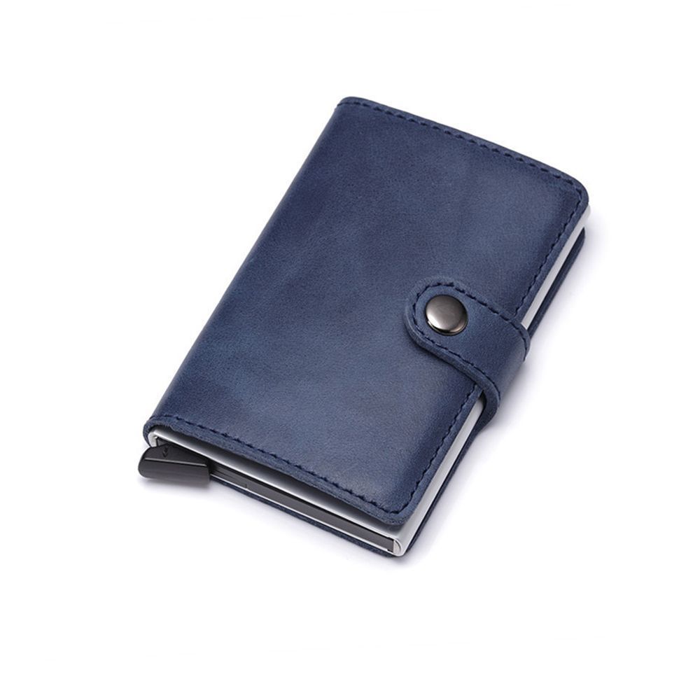 Солидный практичный держатель для банковских карт Bakara с покрытием из экокожи книжного типа и возможностью закрывать, а также функцией RFID, чтобы защитить карты он несанкционированного копирования. Имеет нижнюю кнопку для быстрого извлечения карт.