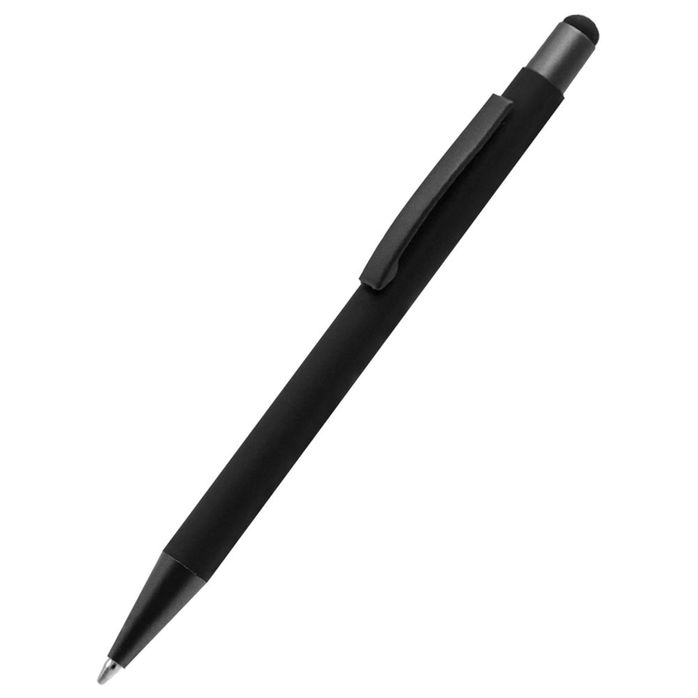 Бархатистая на ощупь ручка Story сотф-тач сделана из металла. Синие чернила, имеет стилус для взаимодействия с портативными устройствами. Толщина пишущего узла 1 мм, длина письма рассчитана на 700 м.