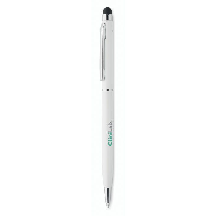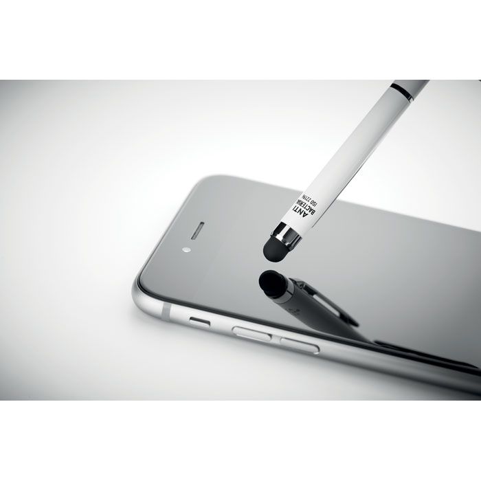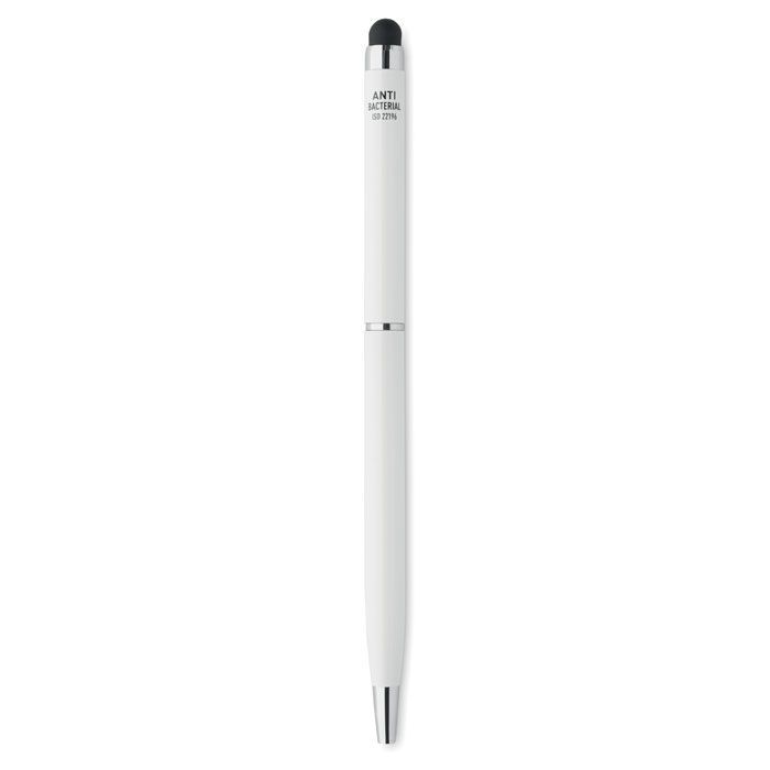 Шариковая ручка-стилус алюминиевая поворотная с антибактериальным корпусом и блестящим хромированным клипом. ISO 22196. Синие чернила.