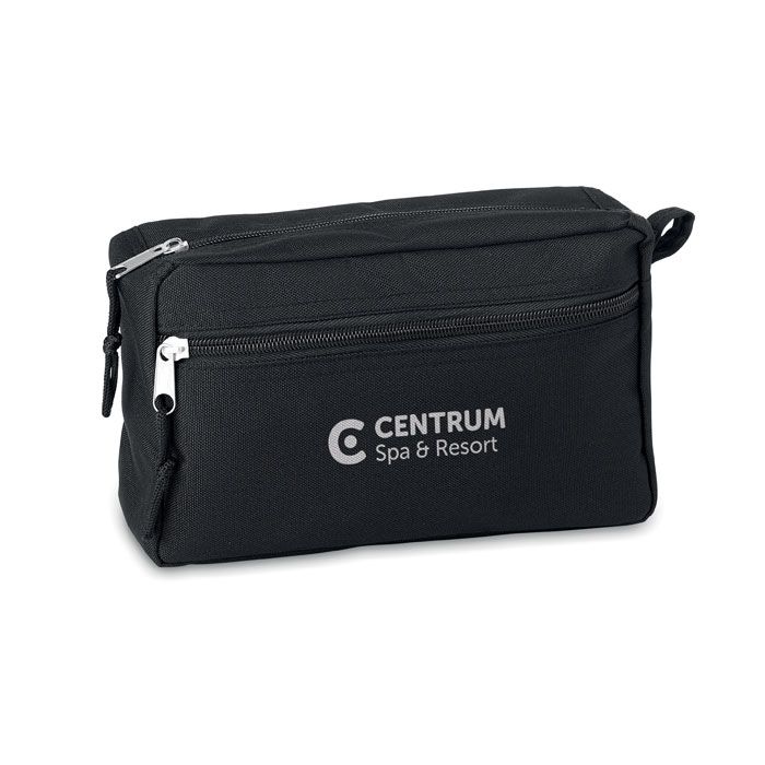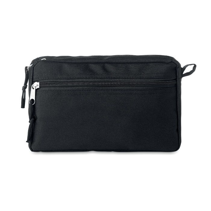 Косметичка с двойной молнией из 600D RPET с полиуретановой подкладкой.