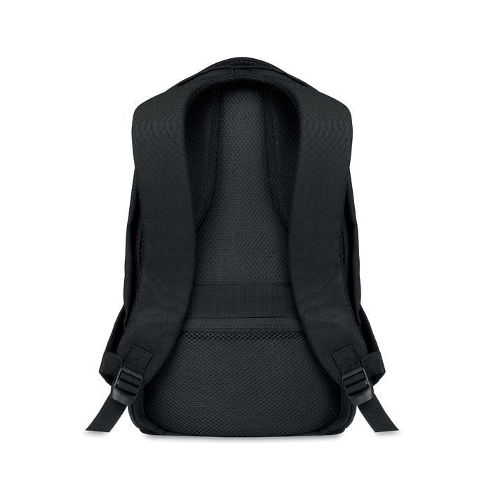 Рюкзак 600D RPET с мягким плечевым ремнем и большим внутренним отделением. Внутри только отделение для ноутбука 13 дюймов. Закрывается на молнию со спины для большей безопасности.