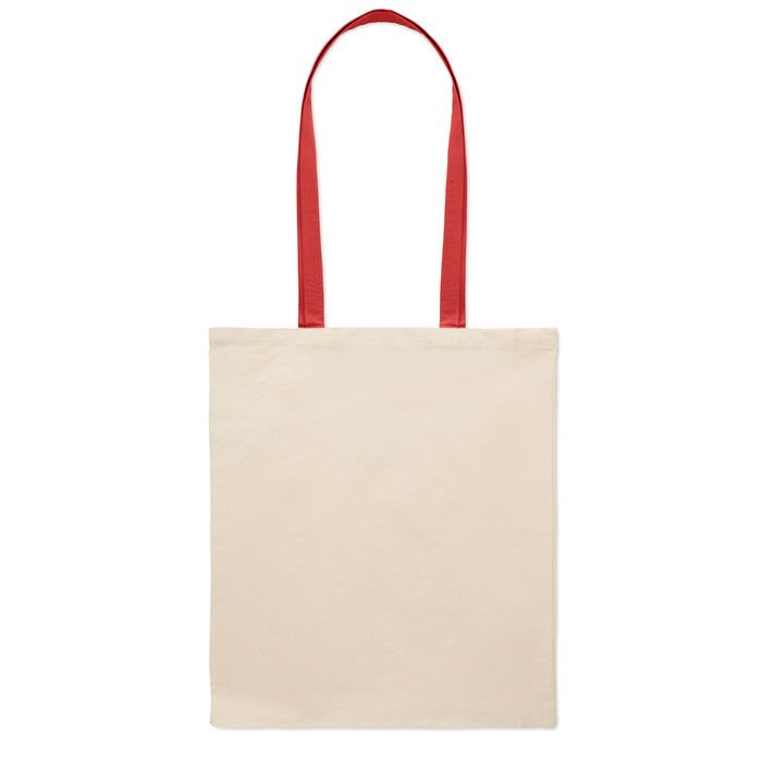 Хлопковая сумка для покупок с цветными длинными ручками. 140 гр/м².