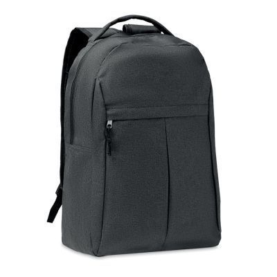 Рюкзак из двухцветного полиэстера 600D RPET с передним карманом на молнии и сетчатым карманом сбоку.