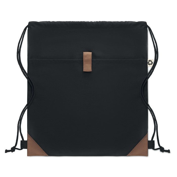 Складная сумка со шнурком «Ash» из переработанных материалов, цвет: черный
