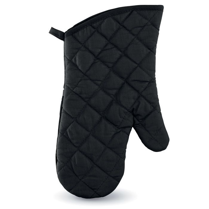 Удобная кухонная рукавица из хлопка с прорезиненной внутренней стороной.