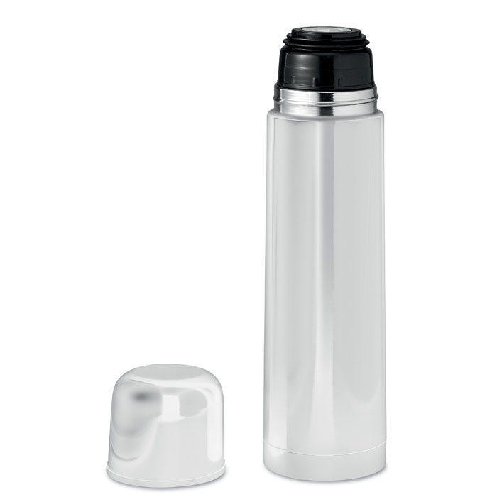 Термос из нержавеющей стали. Емкость 500 мл. Металлическая колба, прока с нажимным механизмом , крышка-чашка с пластиковой колбой. Можно мыть в посудомоечной машине. При гравировке вскрывается серебристый металл.