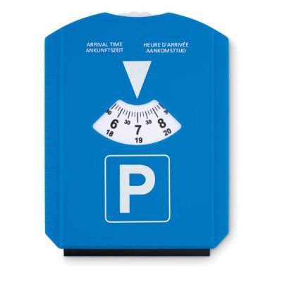 Пластиковый скребок для лобового стекла и парковочная карта с отсчетом времени стоянки автомобиля.