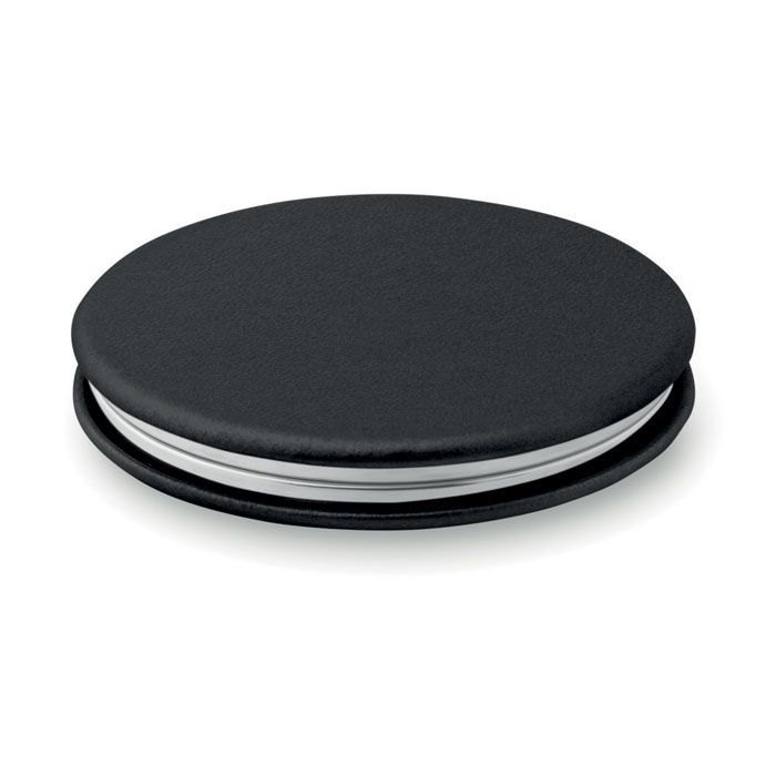 Двойное косметическое зеркальце круглой формы на магните с покрытием из полиуретана.