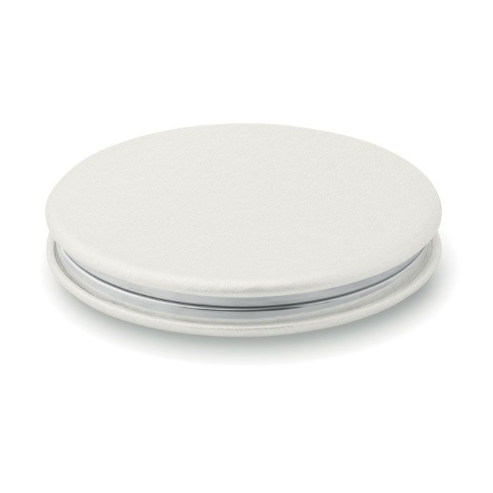 Двойное косметическое зеркальце круглой формы на магните с покрытием из полиуретана.