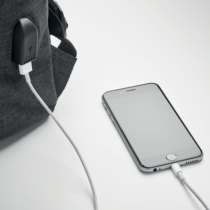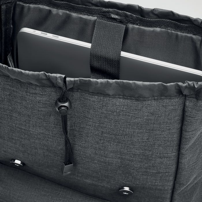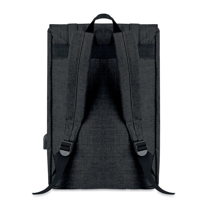 Рюкзак из полиэстера 600D с мягкими шлейками. Внутри 1 отделение для 15-дюймового ноутбука и USB-кабель для зарядки. Декоративные ремни закрываются на магните. Фронтальный карман на молнии.