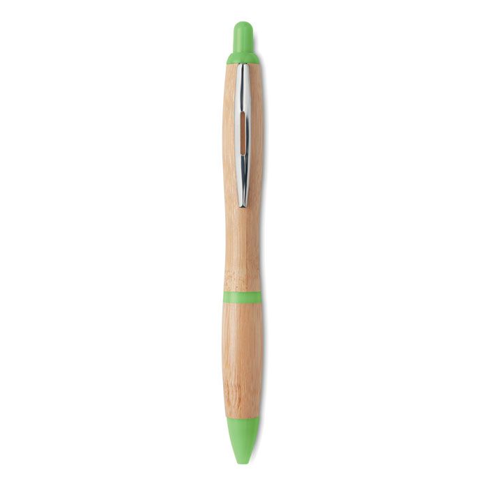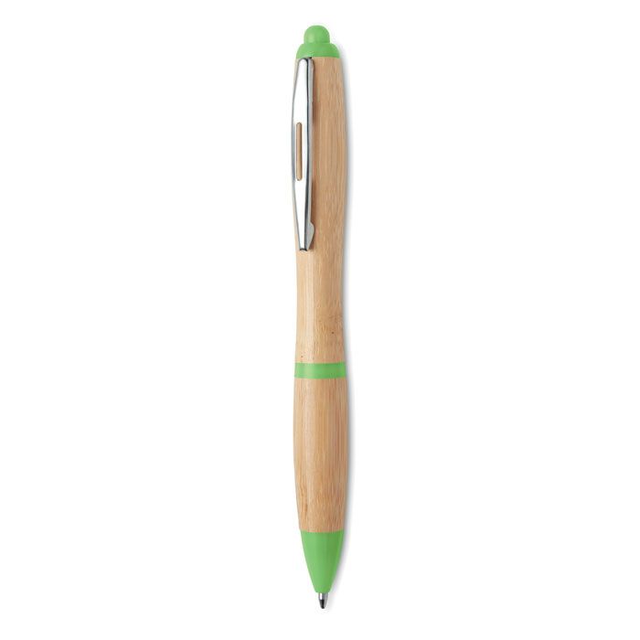 Нажимная шариковая ручка с бамбуковым корпусом и фурнитурой из ABS. Синие чернила.