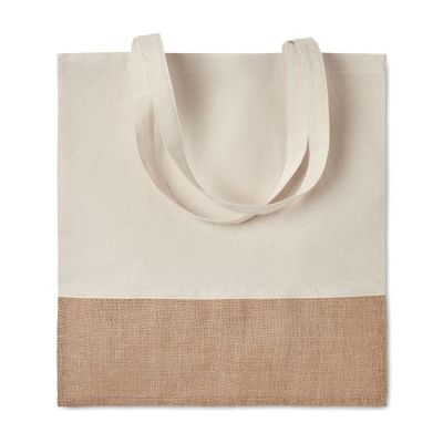 Сумка шоппер с джутовыми деталями. Длинные ручки. 160г/м2.