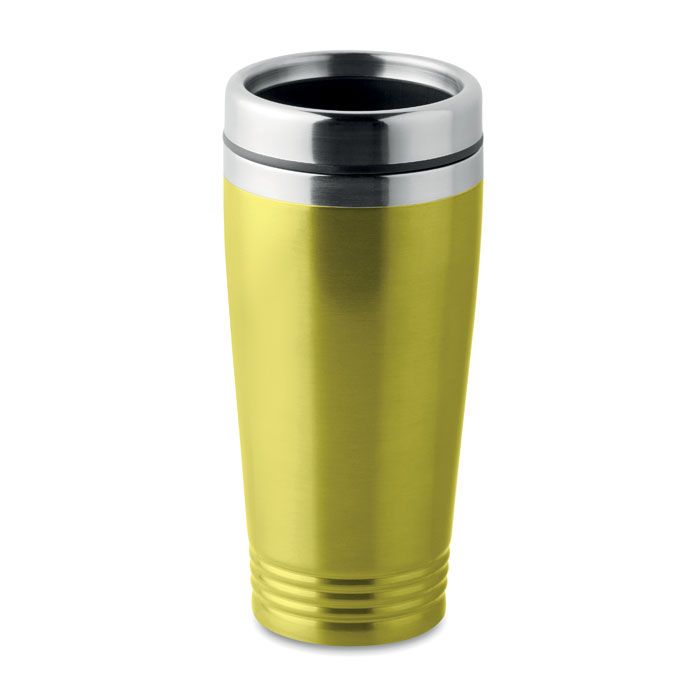 Кружка дорожная двустенчатая из нержавеющей стали с черной крышкой из полипропилена. Емкость: 400 мл.