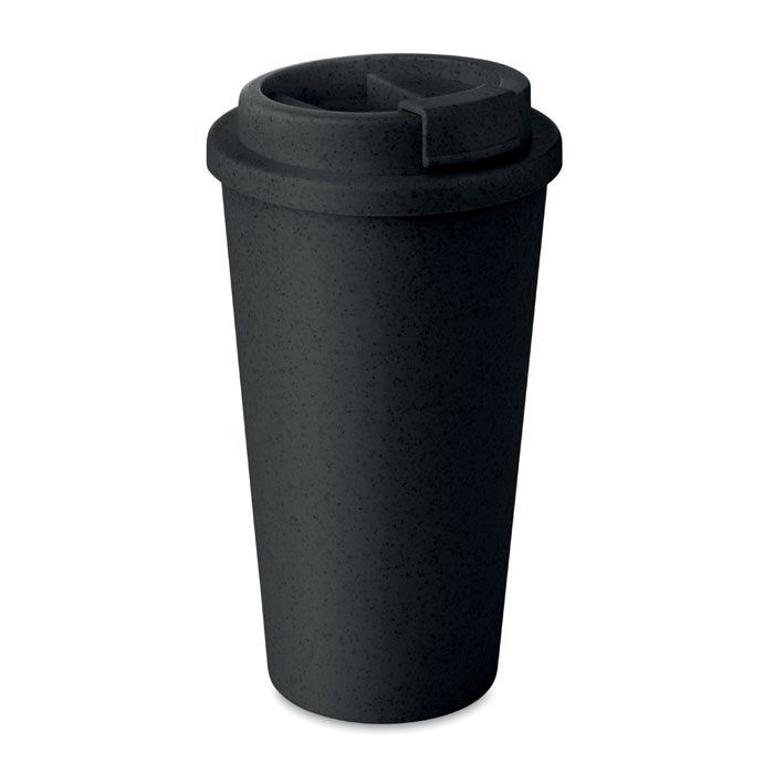 Термостакан с крышкой с двойными стенками. Крышка на резьбе и с запорным механизмом-непроливайкой. Изготовлен из смеси 50% бамбукового волокна и 50% полипропилена. Емкость 475 мл. Можно мыть в посудомоечной машине.