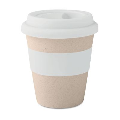 Термостакан одностенный из смеси 40% бамбукового волокна и 60% полипропилена. Емкость 350 мл. Крышка без закупоривающего механизма и манжет - из силикона. Может становиться горячим в силу того, что является одностенчатым. Можно мыть в посудомоечной машине.