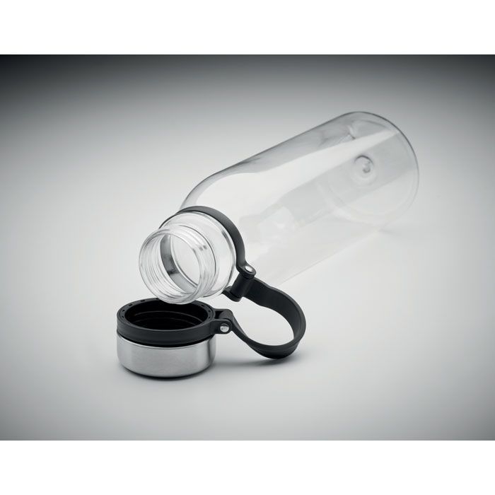 Питьевая бутылка из RPET с крышкой из нержавеющей стали и ручкой TPR для удобной переноски. Не содержит BPA. Герметично. Емкость: 780 мл.