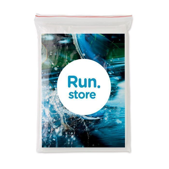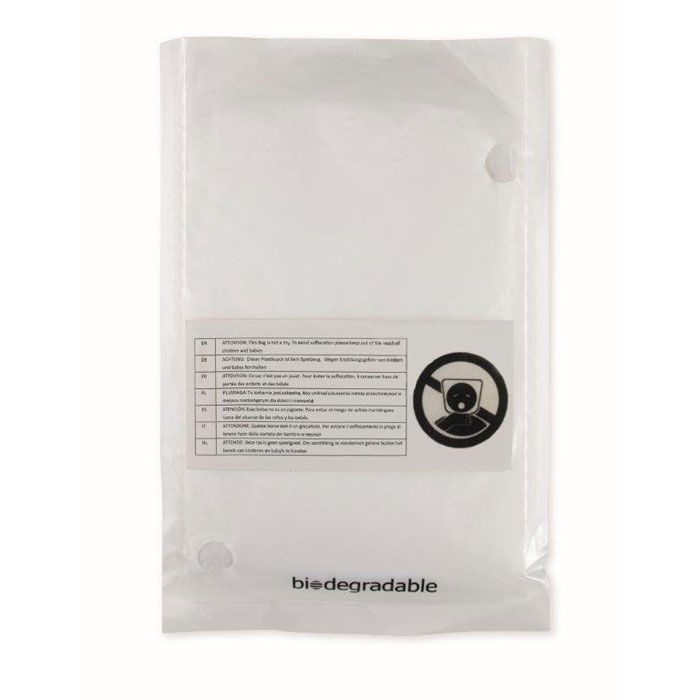 Дождевик из биоразлагаемого материала. Также упакован в биоразлагаемый пакет.