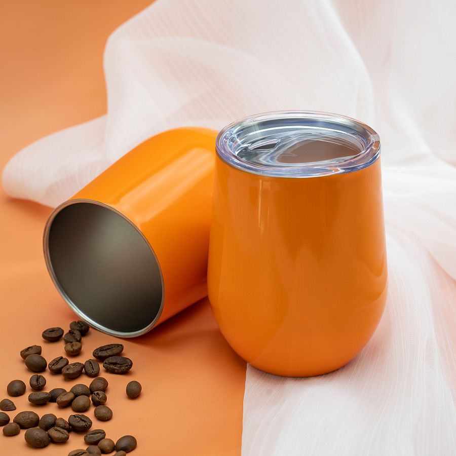 Характерная обтекаемая форма с расширяющейся нижней частью придает коферу оригинальность. Благодаря этой форме, кофер можно использовать для любых напитков: вода, чай, кофе, вино, коктейли - наливайте в кофер все, что захотите, напиток надолго сохранит свою температуру и вкус.