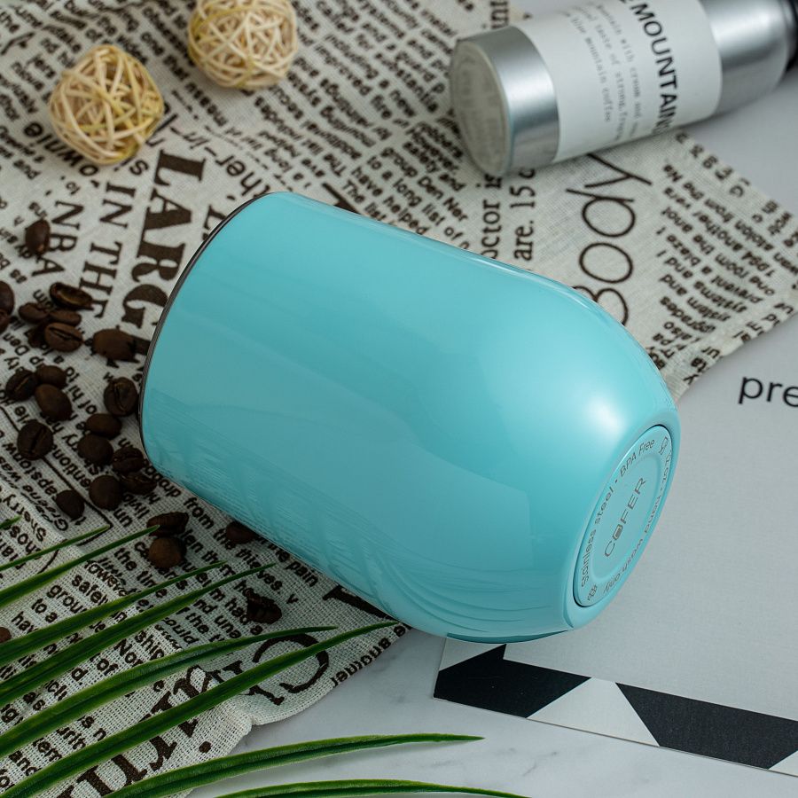 Характерная обтекаемая форма с расширяющейся нижней частью придает коферу оригинальность. Благодаря этой форме, кофер можно использовать для любых напитков: вода, чай, кофе, вино, коктейли - наливайте в кофер все, что захотите, напиток надолго сохранит свою температуру и вкус.