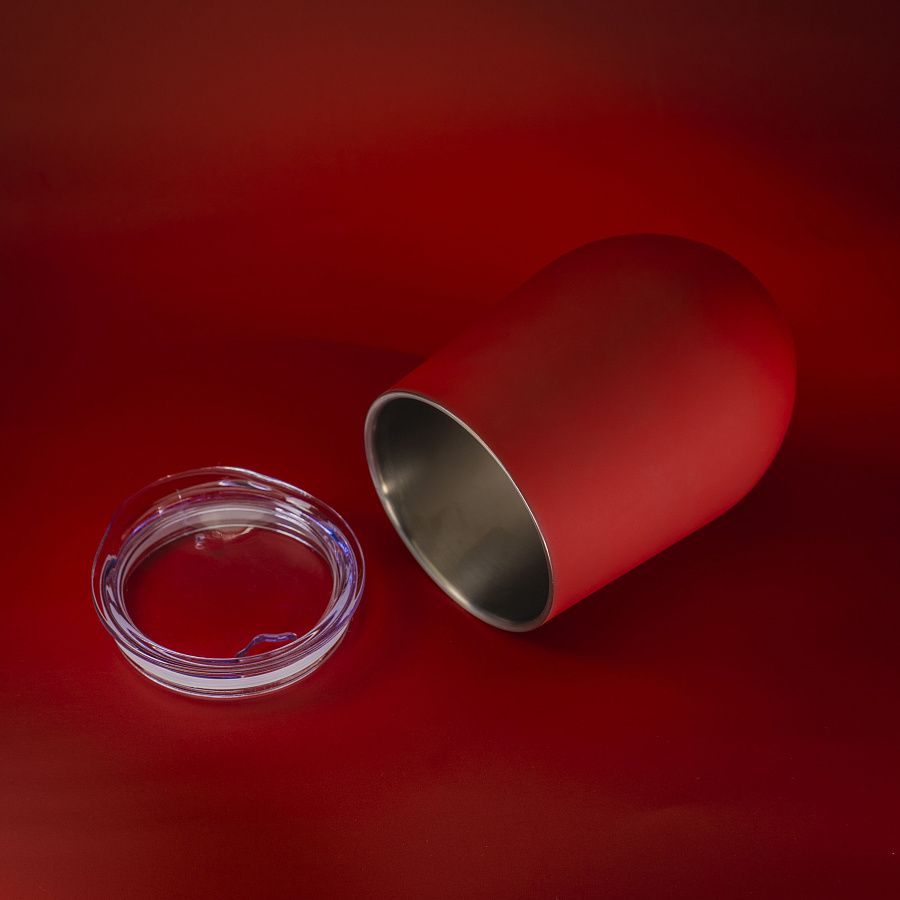 Кофер с тактильно приятным покрытием софт-тач имеет двойные стенки из нержавеющей стали и пластиковую крышку с эргономичным отверстием.