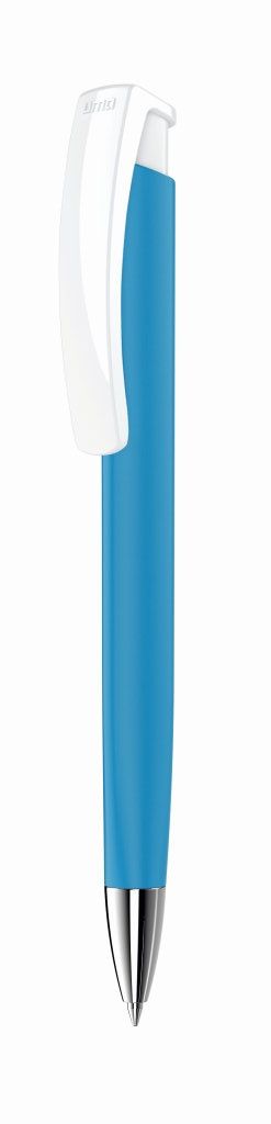 Автоматическая шариковая ручка в трехгранном корпусе из пластика с поверхностью soft-touch.