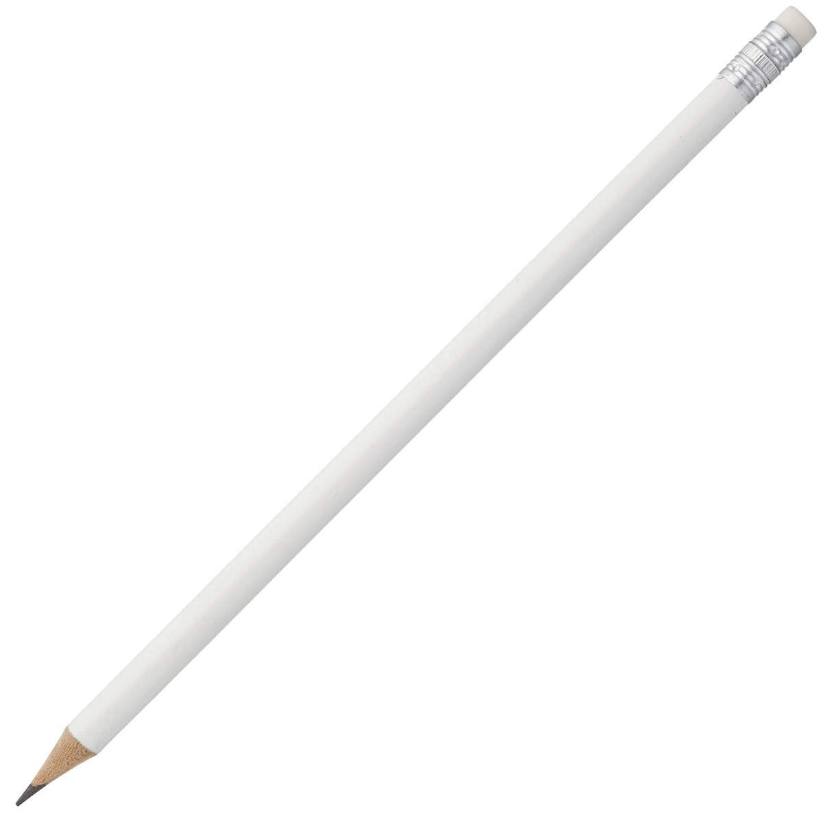 Деревянный круглый карандаш с глянцевым цветным корпусом с ластиком в цвет корпуса.