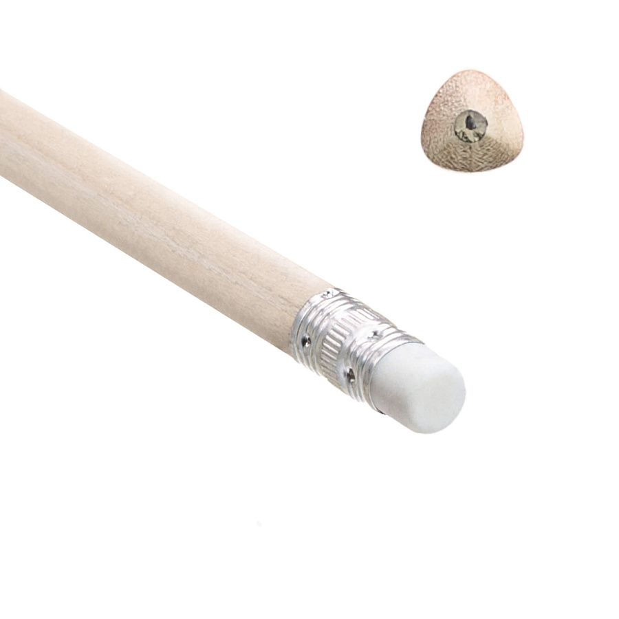 Деревянный карандаш треугольной формы с ластиком в цвет самого карандаша. Твердо-мягкий грифель (HB). Поставляется заточенным. Внимание! Карандаши по промо цене. При транспортировке чистый карандаш может испачкаться от пыли грифеля. В коробке может частично поломаться грифель, но карандаши можно заточить Резинка может пачкаться в коробке при соприкосновении с другими карандашами и пылью грифеля. Индивидуальных пакетиков для карандашей нет, так как это эко промо материал. Так как это натуральное дерево, карандаш может иметь естественную фактуру дерева, которую не всегда можно закрыть красящим слоем. Перед запуском тиража, рекомендуем взять образец.