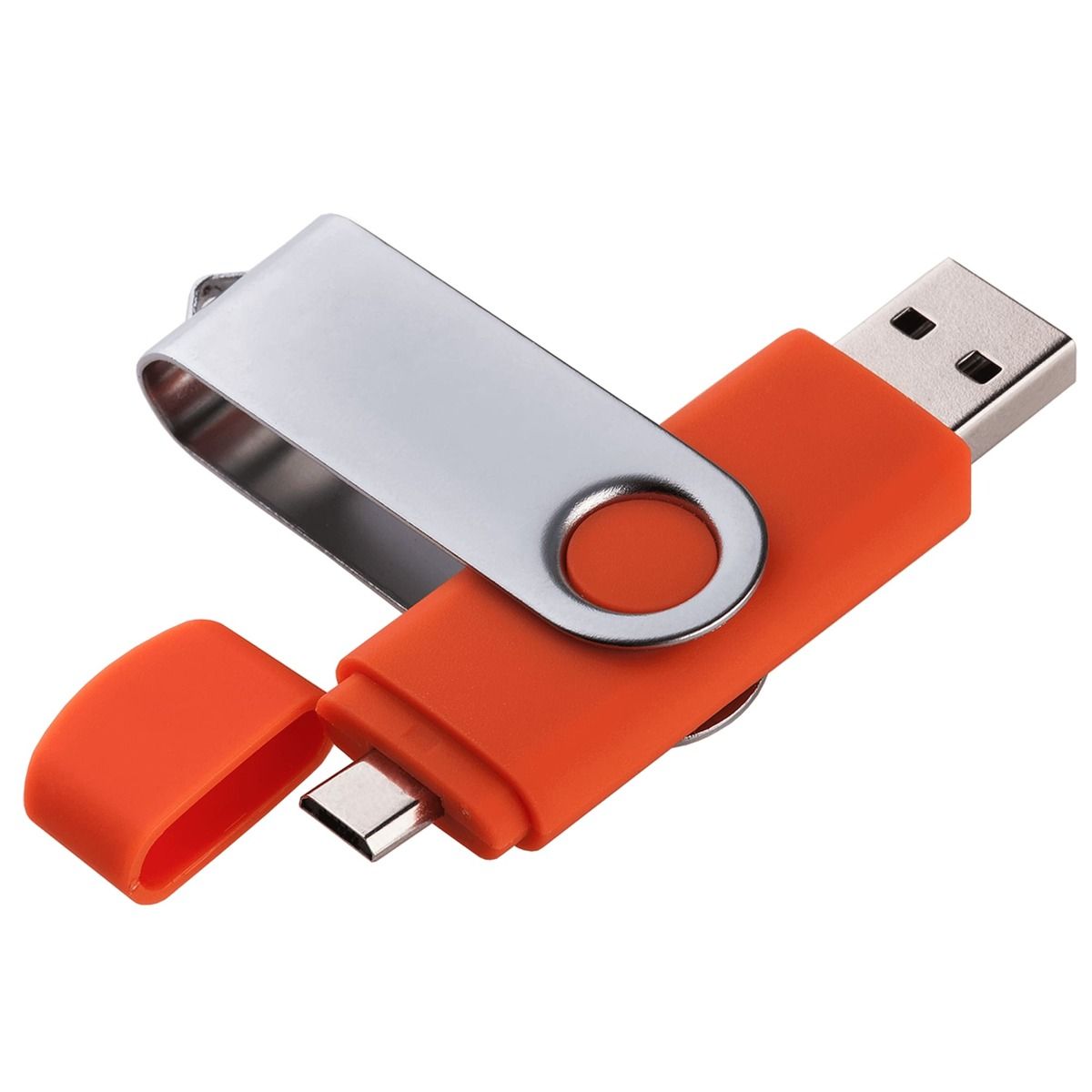 Флешка TWIST с дополнительным разъемом microUSB. Пластиковый корпус с покрытием soft-touch (софт-тач). Металлическая цветная скоба.