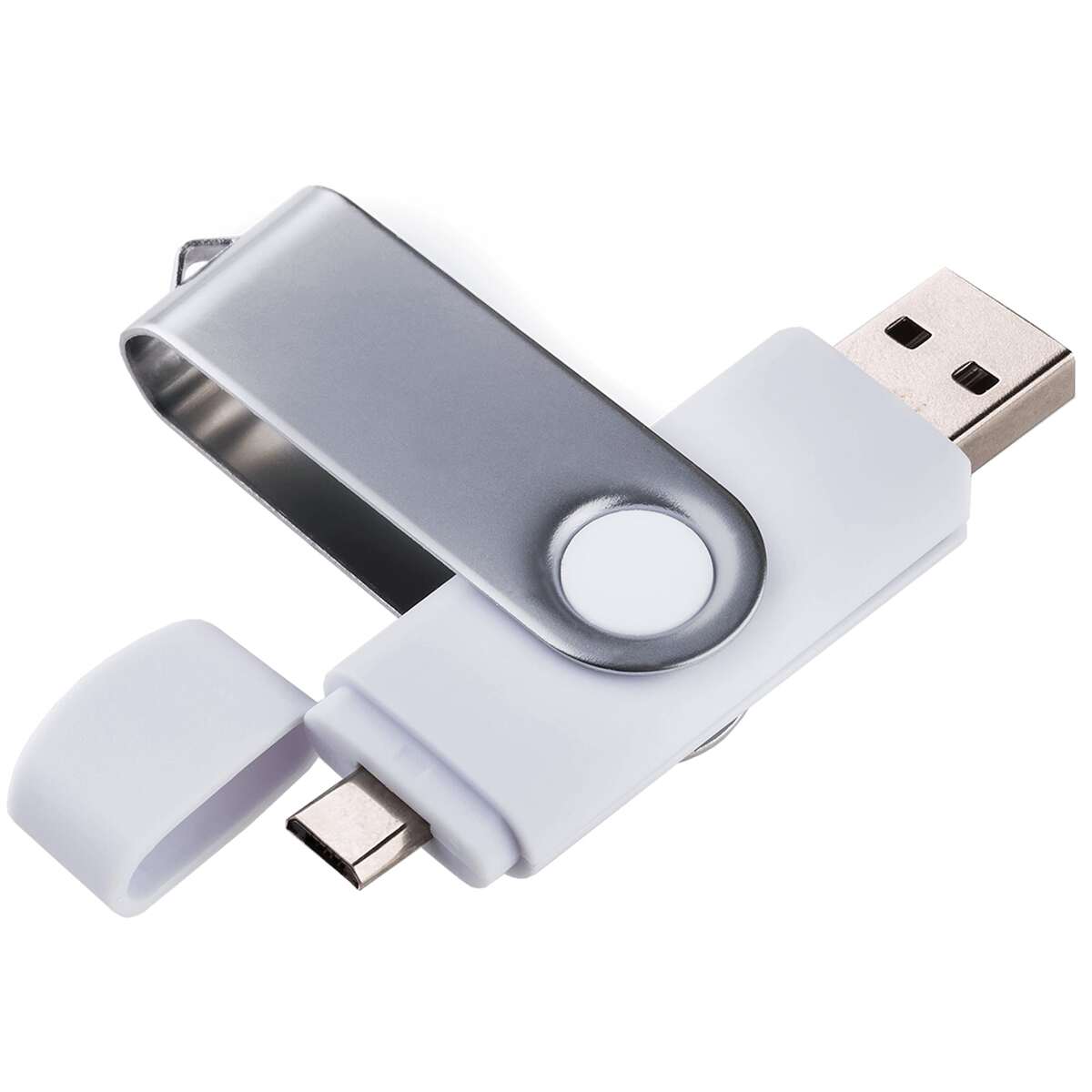 Флешка TWIST с дополнительным разъемом microUSB. Пластиковый корпус с покрытием soft-touch (софт-тач). Металлическая цветная скоба.