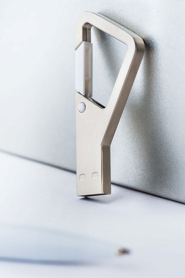 Флешка карабин. Металлический корпус с цветной пластиковой вставкой.