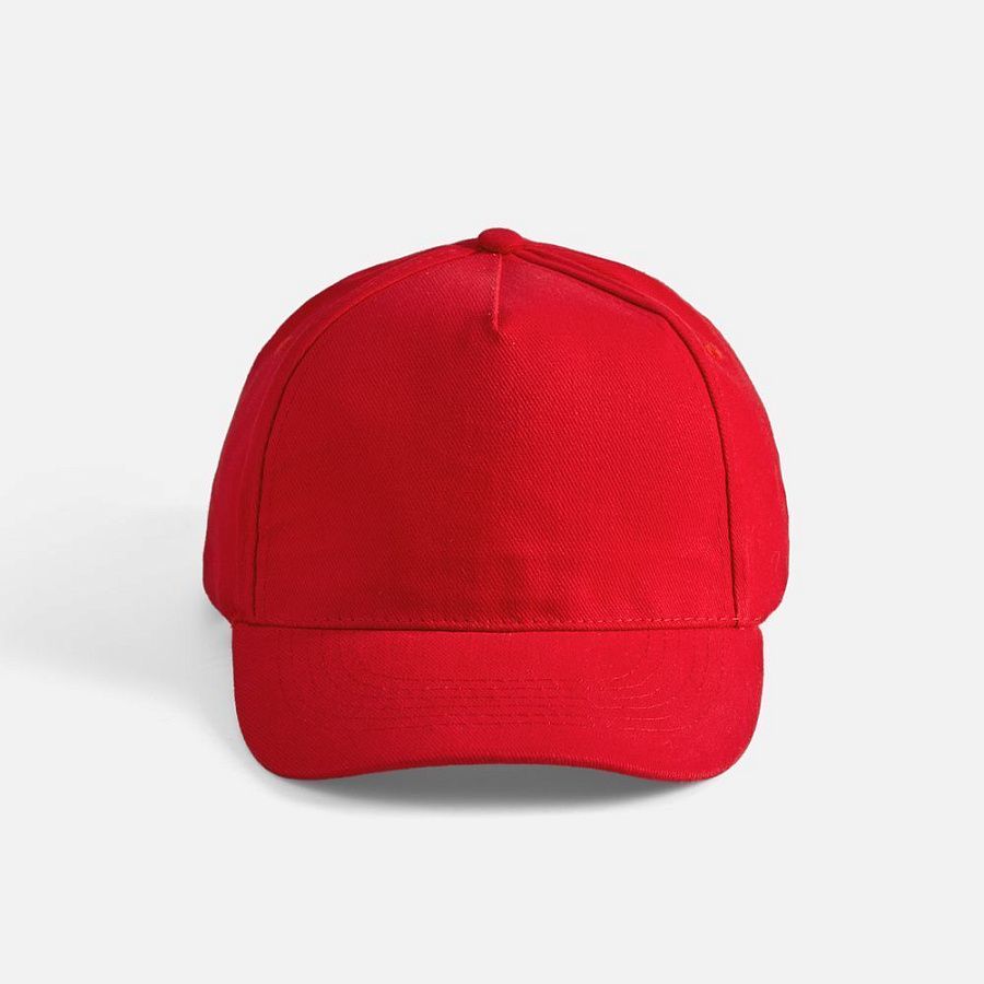 Модель бейсболки с 5-ю клиньями без лобового шва из плотного чесаного хлопка.