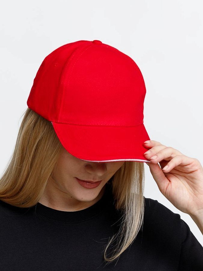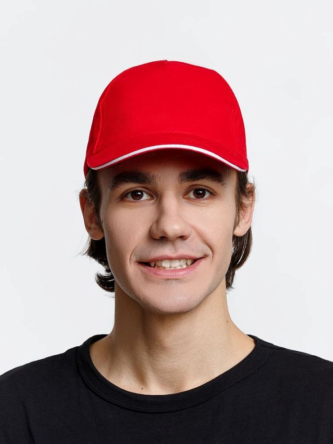 Модель бейсболки с 5-ю клиньями без лобового шва из плотного чесаного хлопка.