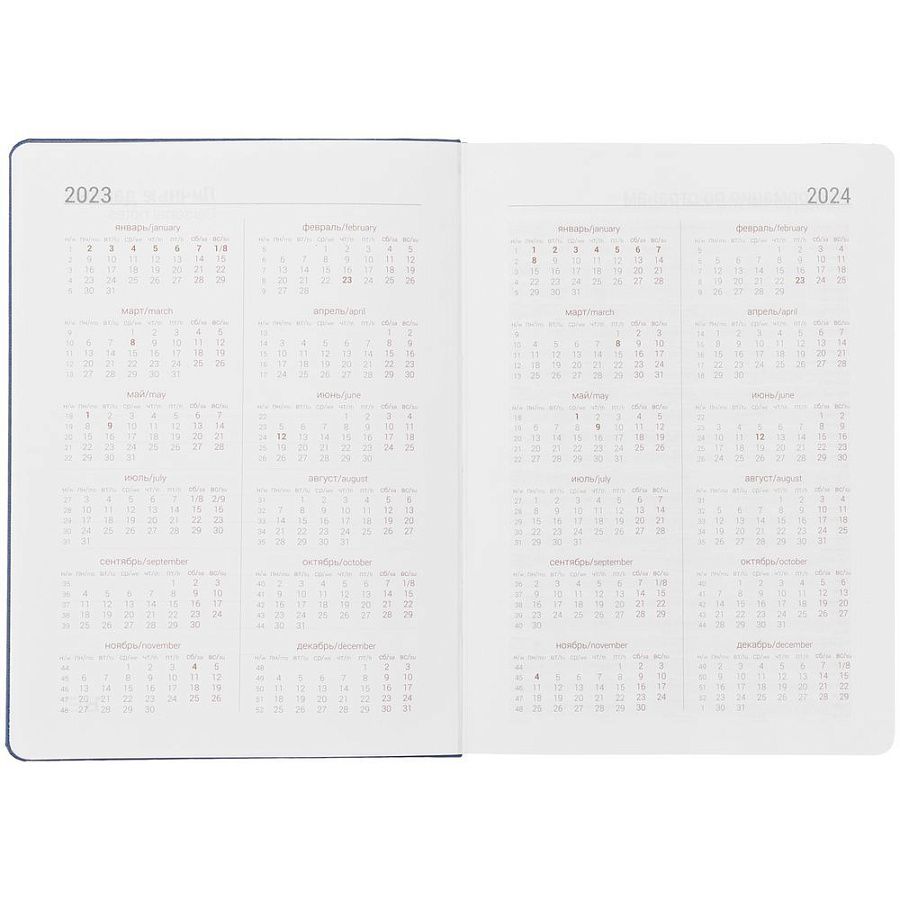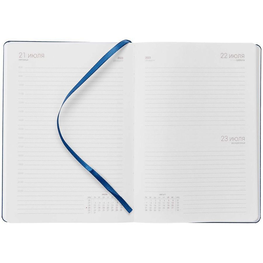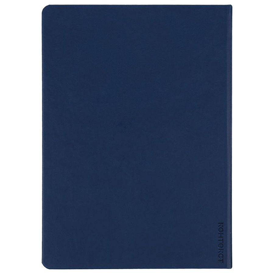 Ежедневник с твердой обложкой, выполнен из материала Latte, темно-синий XX, дополнен ляссе в цвет обложки.