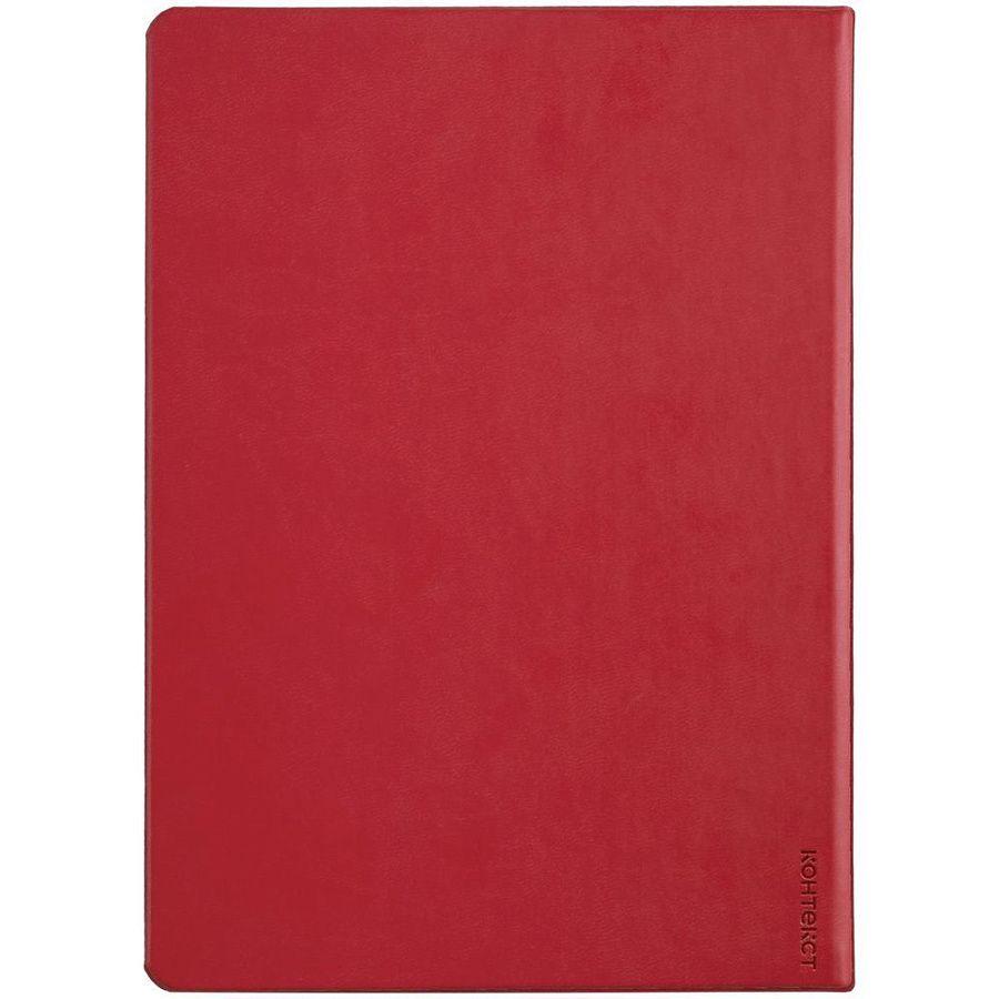 Ежедневник с твердой обложкой, выполнен из материала Latte, красный РР, дополнен ляссе в цвет обложки.