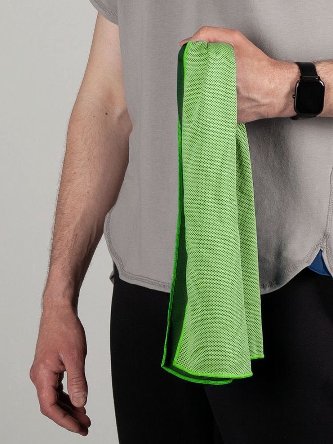 Полотенце поглощает тепло и регулирует температуру благодаря особенной структуре ткани из гидрофобных волокон с технологией трехмерного объемного плетения. Они ускоренно испаряют влагу, обеспечивая тем самым интенсивное снижение температуры.
