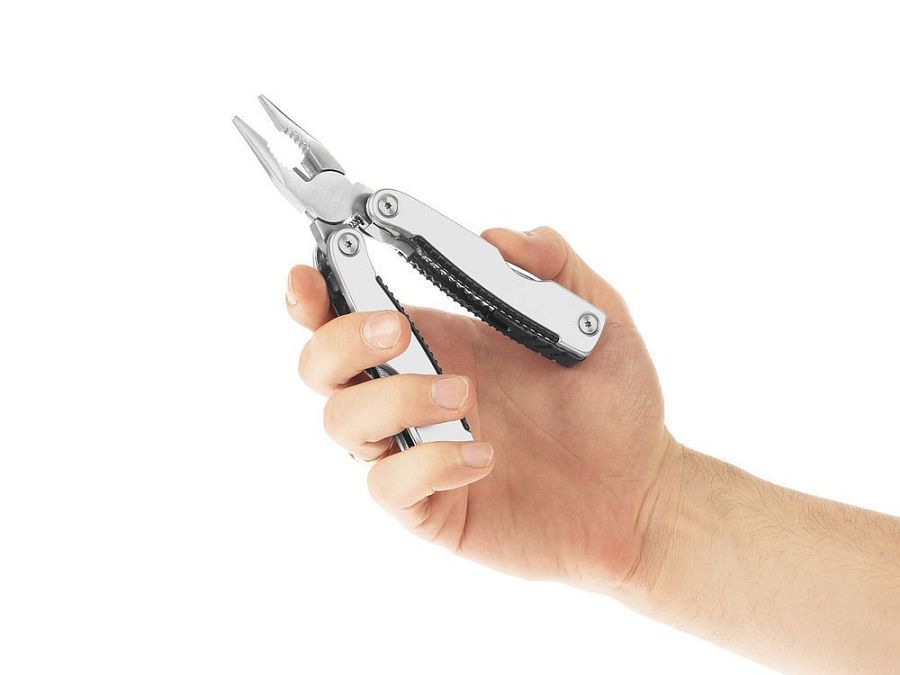 Классический мультитул-плоскогубцы, в рукоятках которого прячется еще 10 полезных инструментов от отвертки до пилы. Выручит во многих бытовых ситуациях, а для хранения удобно складывается в прочный чехол.