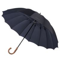Солидный изысканный зонт с ручкой из дерева и 16 спицами. Большой купол легко укроет от дождя сразу двоих, а надежная конструкция выдержит даже сильный ветер.