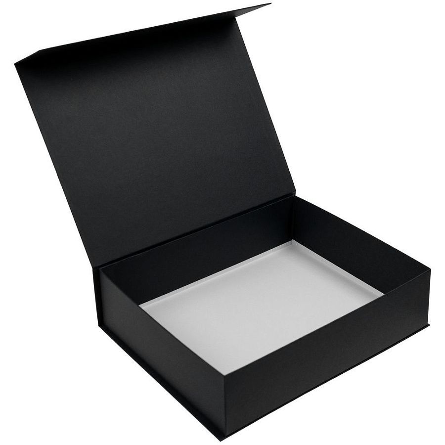 Коробка изготовлена из переплетного картона, кашированного дизайнерской бумагой Majestic цвета «Белый мрамор».